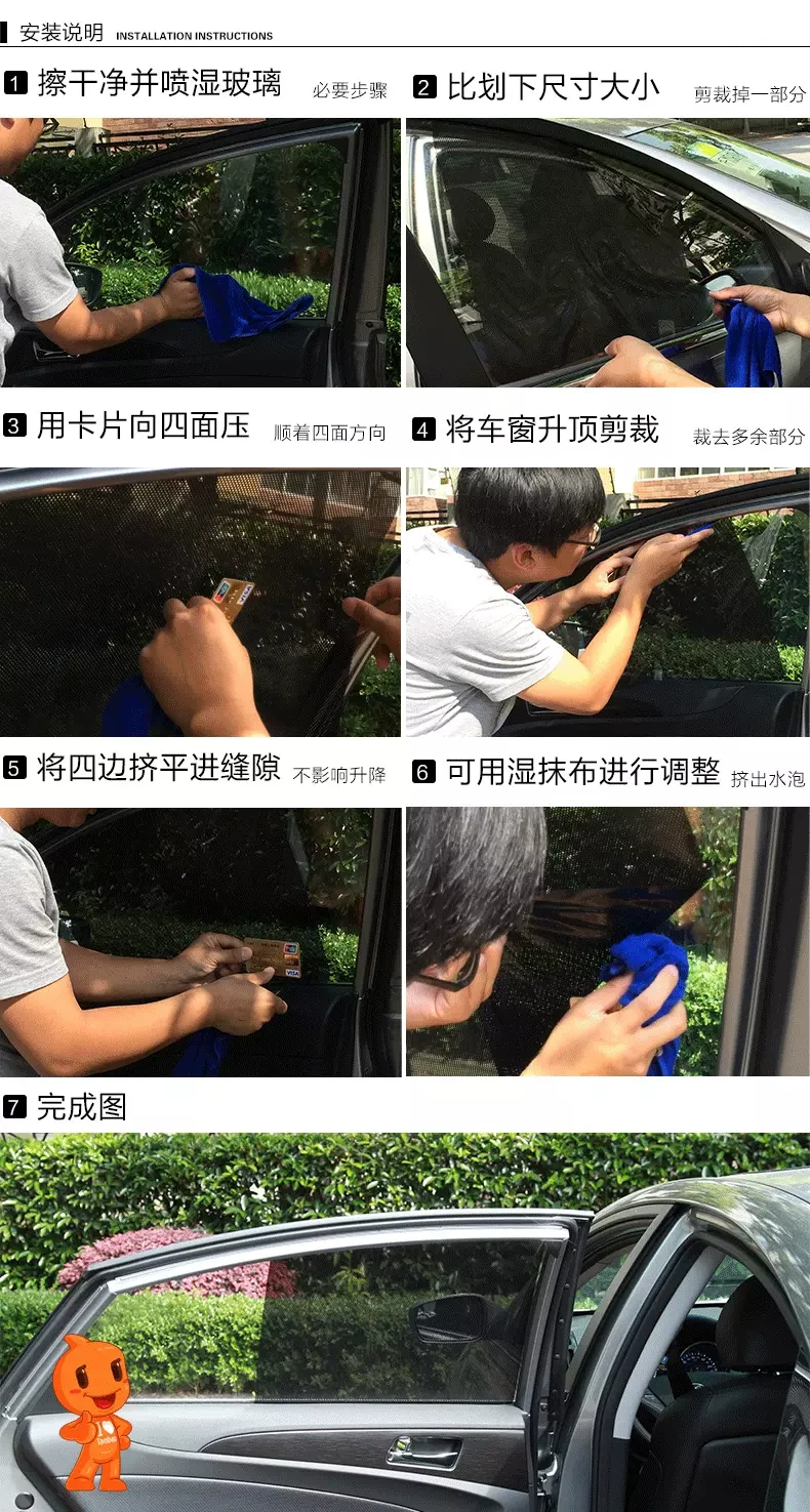 1, the window with a clean and wet the glass, 2, paste the appropriate contrast, careful not to have bubbles can be pressed to the sides through the card, discharge bubbles 3, posted a good shade posted after the window or roof, trim areas. 4, the four sides of the sun squeezed flat stick, and thus the gap, does not affect the window lift! (Used wet towels out of the bubble)