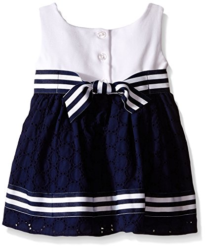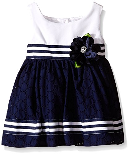 -. Title : Sweet Heart Rose Baby Girls' Knit To Eyelet Dress with Striped Ribbon Detail