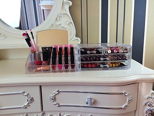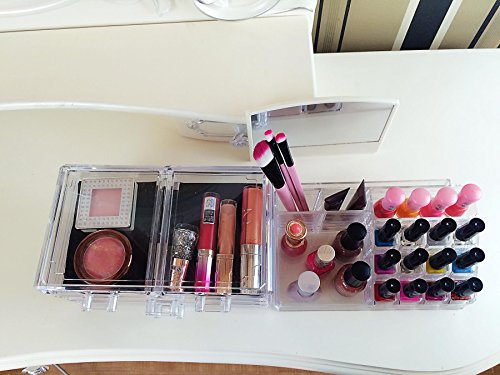 EASY TO CLEAN: Unlike other cosmetics or jewelry boxes that retain stains or colorization from your makeup, rings, or earrings, organizes all your makeup and cosmetics into a dazzling personalized beauty counter, our acrylic boxes are easy to clean and won't discolor over time.