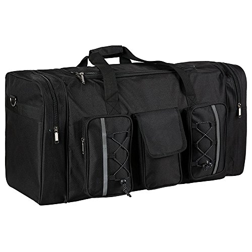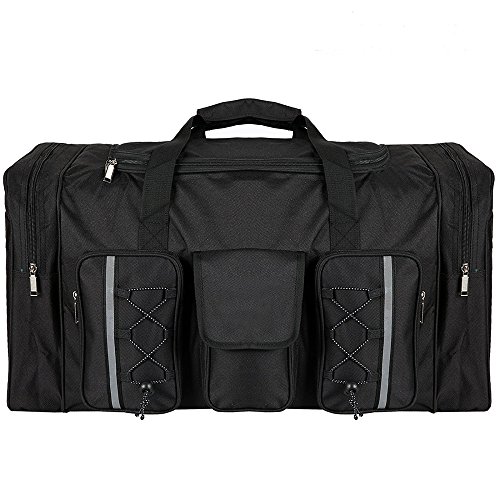 -. Feature : LARGE CAPACITY: 26" (Dimensions:26.0 x 15.2 x 12.1 inch (L x W x H) ). The capacity of this large sports, travel duffle bag is about 75 liters with multiple pockets, which is ideal to be used as sports bag to carry all your sport gears as well as a travel bag to carry all your travel necessities. / HIGH QALITY: This Garain duffle bag is made of highly waterproof resistant 600D polyester Oxford fabric, extremely solid and durable. It provides high strength and long-lasting outstanding performance with minimal weight. / MULTI-FUNCTIONAL: This duffle has many multi pockets and compartments, which will meet all your needs of carrying lage or storing all kinds of goods. / A HOME & TRAVEL ESSENTIAL: Use at home to store and carry your sport gears, more important, your travel savior, it can be unfold at airport to avoid excess baggage charges, and makes sure to always take this one duffel with you on any trip or travel. One is enough, no more other lage, extremely convenient. / UNIQUE DESIGN: Durable high quality waterproof material, large capacity, lightweight, compact, functional duffle bag, 2 handle straps, maximum 75liter/110lb weight, solid black color. Efficiently change your life and traveling experience.