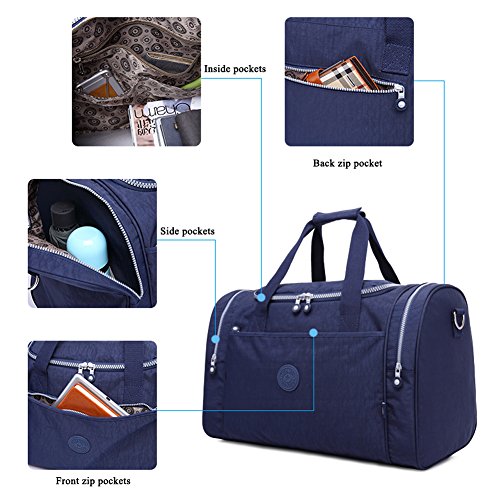-. Brand : Oakarbo -. Department : unisex-adult (lage only) -. Feature : ROOMY COMPARTMENT: easy U-zip access to main padded compartment / OUTPOCKETS: 1 front pocket for handy essentials, 1 rear zip pocket, 2 side pockets for added storage, allowing you to easily store all your travel essentials / INSIDE POCKETS: 2 interior back wall zip pockets( keep credit cards and other valuables) / ADJUSTABLE SHOULDER STRAP: Top carry straps and a removable shoulder strap, allow you to wear the bag as a tote bag or crossbody bag / DIMENSION (L x W x H): 20 x 11 x 13 in | 51 x 28 x 33 cm; Weight: 2.4lb/1.07kg -. ProductGroup : Apparel -. ProductTypeName : LAGE -. Title : Oakarbo 20 Inches Nylon Carry-on Storage Travel Duffel Weekender Bag