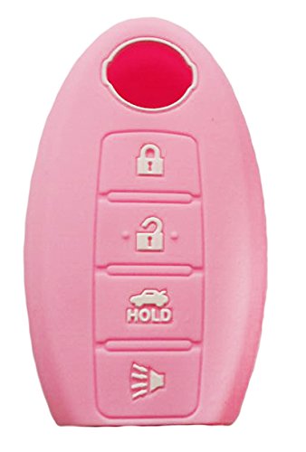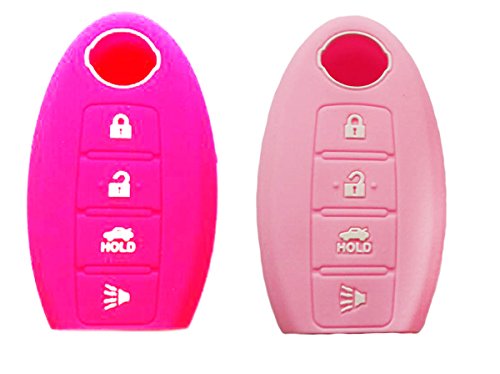 WELLSKEY 2pcs Car Key Case Cover Holder Replacement 4 Buttons For Nissan Almera / Altima / GT-R / Maxima / Murano / Sentra / Teana / Tiida / Juke / Qashqai / X-trail KC009061 (Pink, Light Pink)
