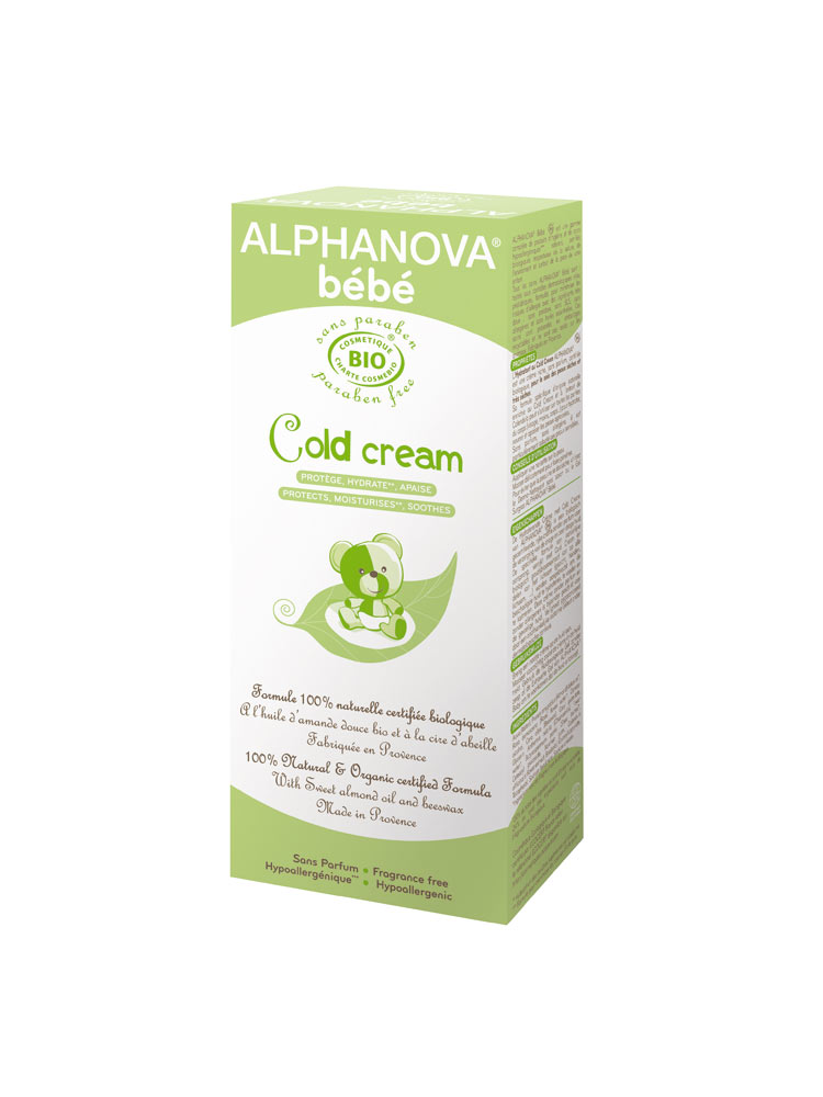 The Alphanova Baby Cold Cream BIO 50ml, soothes, protects and moisturises skin. This rich cream, non fragranced and certified and organic, takes care of dry to very dry skins.