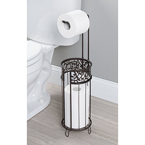 mDesign Toilet Paper Holder Stand with Toilet Tissue Reserve for Bathroom Storage - Bronze