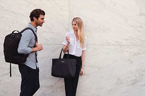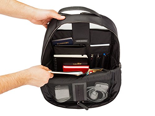 The Jake Laptop Backpack is a customer favorite and our best seller for men. It has a streamlined silhouette crafted from our soft but sturdy nylon canvas, signature gun-metal hardware, and embossed black Prada Saffiano Leather trim for a classic, utilitarian aesthetic. Water-Resistant treatment keeps your bag safe from happy hour spills.