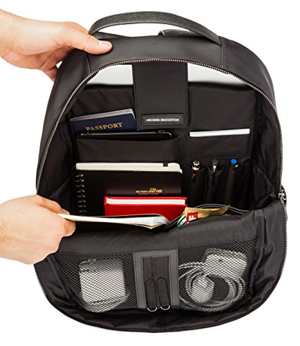 The Jake Laptop Utility Backpack by Archer Brighton has all the specs needed for the ultimate functional, minimalist computer bag. This ideal men's backpack with leather trims is ready for work, school, or a city bike ride with sophistication to spare. It includes a padded up-to 15 inch laptop sleeve secured with a button closure.