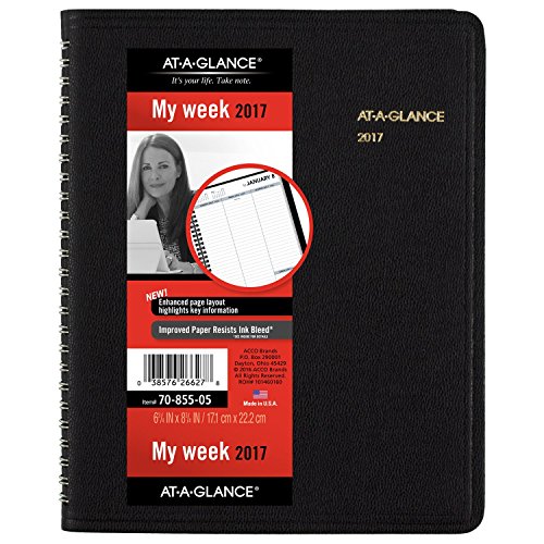-. Title : AT-A-GLANCE Weekly Planner / Appointment Book 2017, Open Scheduling, 6-3/4 x 8-3/4", Black (70-855-05)