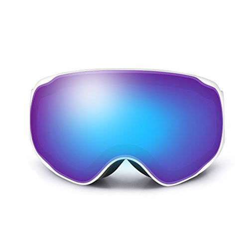 -. Feature : Frameless HD Glasses with Wider Peripheral Vision: protecting your eyes without missing any moment while Skiing, snowboarding, snowmobiling and other winter sports / Double Lens ANTI FOG Protection: Outer mirrored Lens keeping from UV, Snow, wind and scratch; inner lens is embedded with premium anti-fog layer, restricting moisture build-up / FLOW VENT TECHNOLOGY - Designed to reduce fogging and optimize airflow over the inside of the lens, these venting ports prevent clogging from snow and ice and provide the ultimate defense against icy winds / Compatible with HELMETS and MASK: fit easily and comfortably over most helmets, Padded with a quick-release adjustable strap, suited for most ages and head sizes / Package Includes: Ski Goggles, Carry Pouch, 12 Month Warranty and Easy to Reach Customer Service
