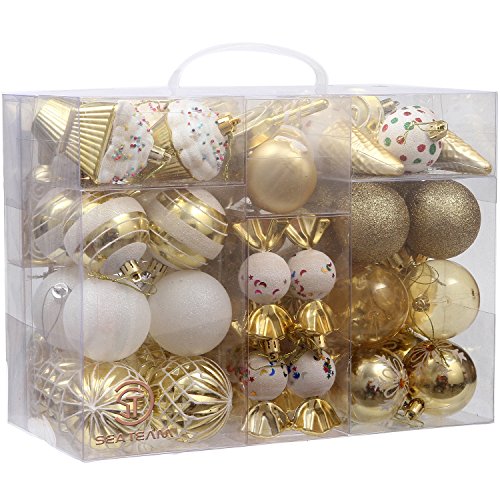Sea Team 81-Pack Assorted Shatterproof Christmas Ball Ornaments Set Decorative Baubles Pendants with Reusable Hand-held Gift Package for Xmas Tree (Gold)