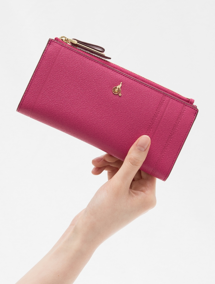 탑지퍼 형태로 되어있어 실용적이며 슬림한 그립감으로 사용하기에 좋은 2단 장지갑입니다.
