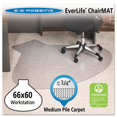 -. Title : EverLife Chair Mats For Medium Pile Carpet, L-Workstation w/Lip, 66 x 60, Clear, Sold as 1 Each