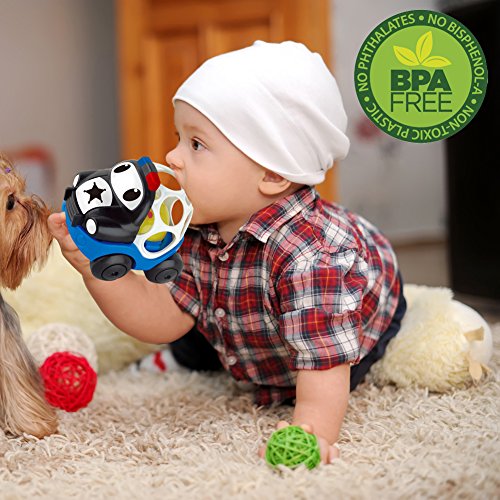 These cars are perfect for even the youngest of cartoon car fans. Cartoon vehicles feature those signature geometric holes that are more fun to pick up and easy for even the youngest, most inexperienced fingers to grasp. These easy-to-grip cars are rugged and virtually indestructible. When shaking, straining, rattling or rolling the ball. The amazing laughter & music rang out and light will attract your baby to reach out for touching or crewling! Great for on the go and inspiring more imaginative play times. These brightly colored cars are so easy to pick up, they're the ideal choice for baby's very first car.