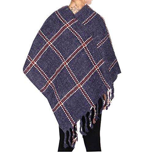 (Sophias Style)/Accessories/Cold Weather Accessories/DIRECT FROM USA/Women Navy Contrast Diamond Pattern Tassel Edge Soft Chic Scarf Poncho
