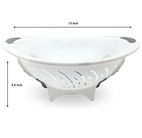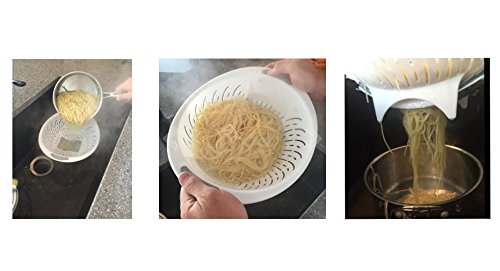 - REVOLUTIONARY DESIGN – Unique White Clever Trap Door Colander provides the ultimate convenience for straining, draining, and serving foods such pasta , salad , tomato , fruits , veggies , berries and even ground meat. No Silicone used.