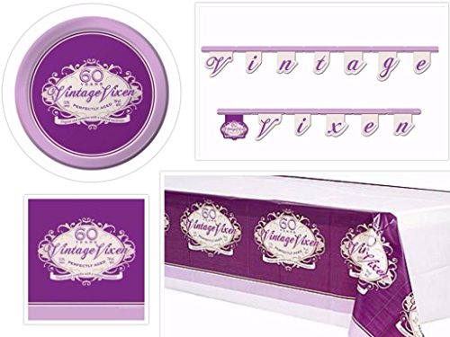 Creative Converting Vintage Vixen 60th Birthday Party Supplies Pack Including Plates, Napkins, Table Cover & Jointed Banner