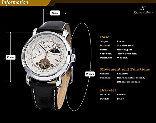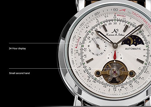 -. Binding : Watch -. Brand : KS -. Color : White -. Department : Mens -. EAN : 0700371429652 -. Feature : Kronen&Söhne originale watch / Small second hand is integrated to sub dial, 24 hours display. / 12 months International Guarantee. / ATTENTION!!! Automatic movements mark the passage of time by a series of gear mechanisms, and are worked by the movement of your wrist as you wear it. It will stop if the watch stop moving for a long time, please turn the crown of watches by hand / Be Sent in a solid box with a warranty card. 12 months International Guarantee -. Label : KS -. Manufacturer : KS -. Model : KS069 -. MPN : KS069 -. PartNumber : KS069 -. ProductGroup : Watch -. ProductTypeName : WATCH -. Publisher : KS -. Studio : KS -. Title : KS Luxury Tourbillion Moon Phase Automatic Mechanical White Dial Men's Wrist Watch KS069 -. UPC : 700371429652