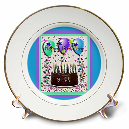 3dRose cp_20213_1 Happy Birthday 90th Chocolate Cake Porcelain Plate, 8-Inch