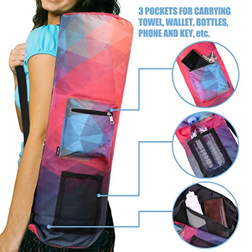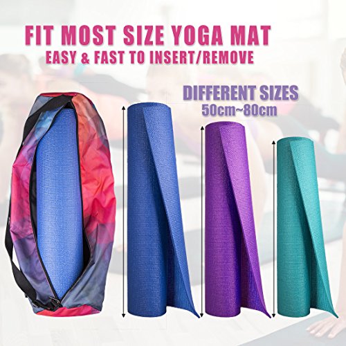 RoryTory Yoga Mat Bag w/ Adjustable Strap, Water Bottle Carrier, Inner & Outer Pockets, Heavy Duty & Machine Washable - Fits Most Yoga Mat Sizes (various colors)