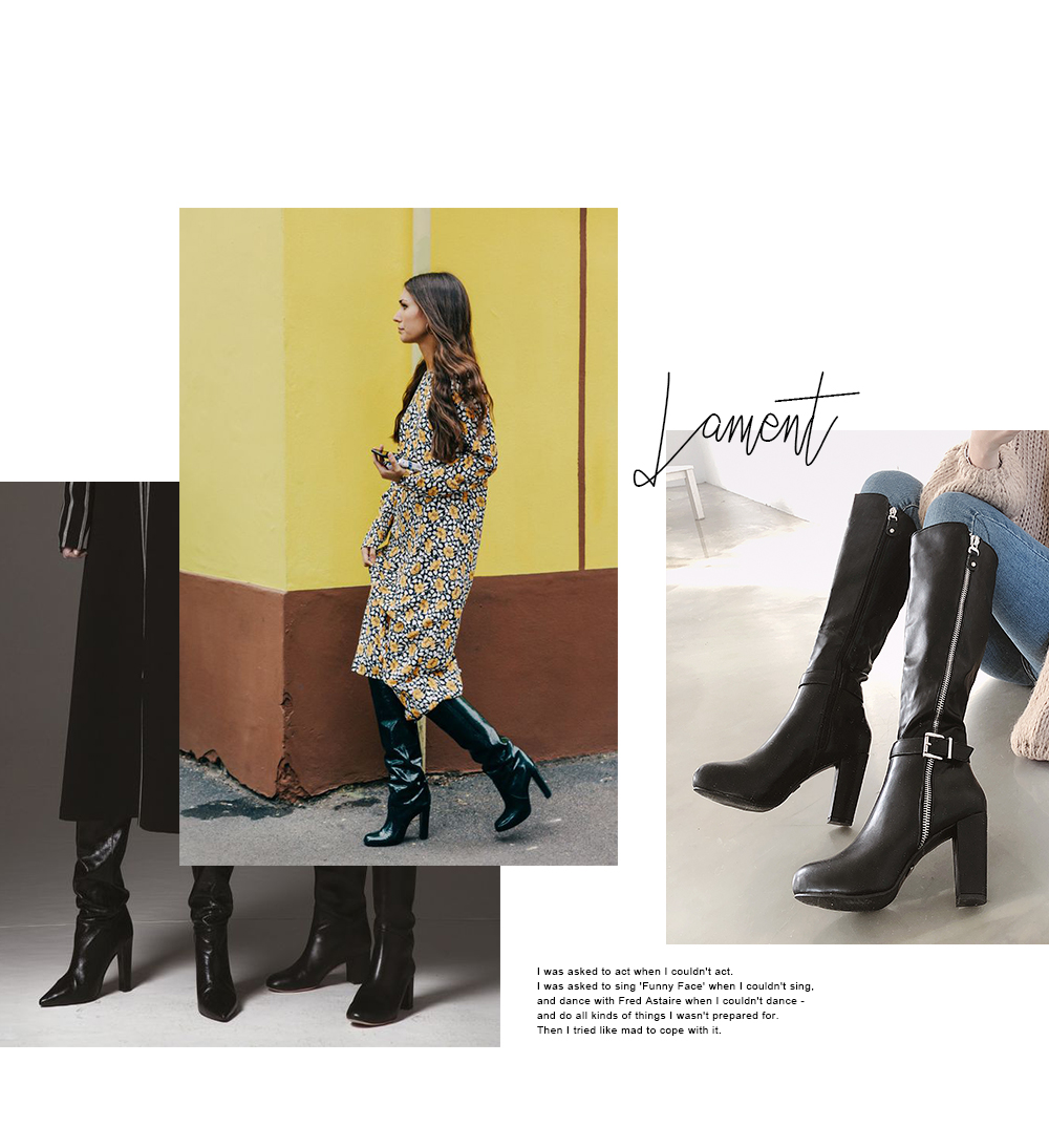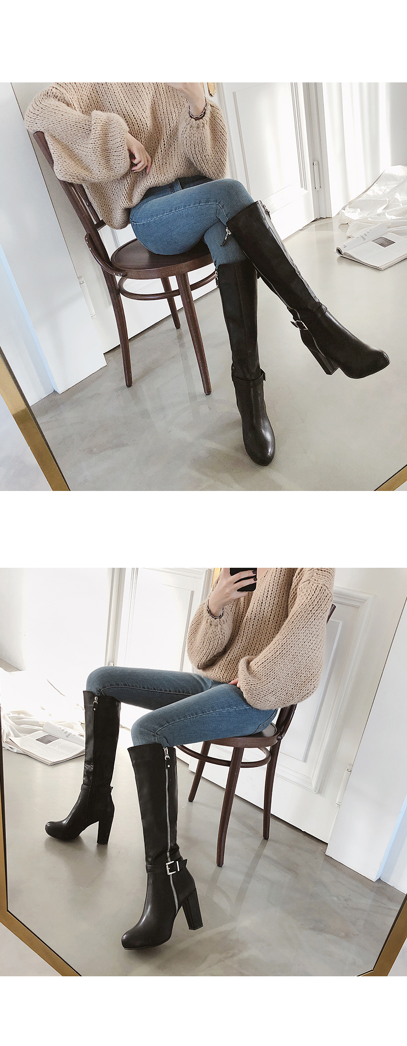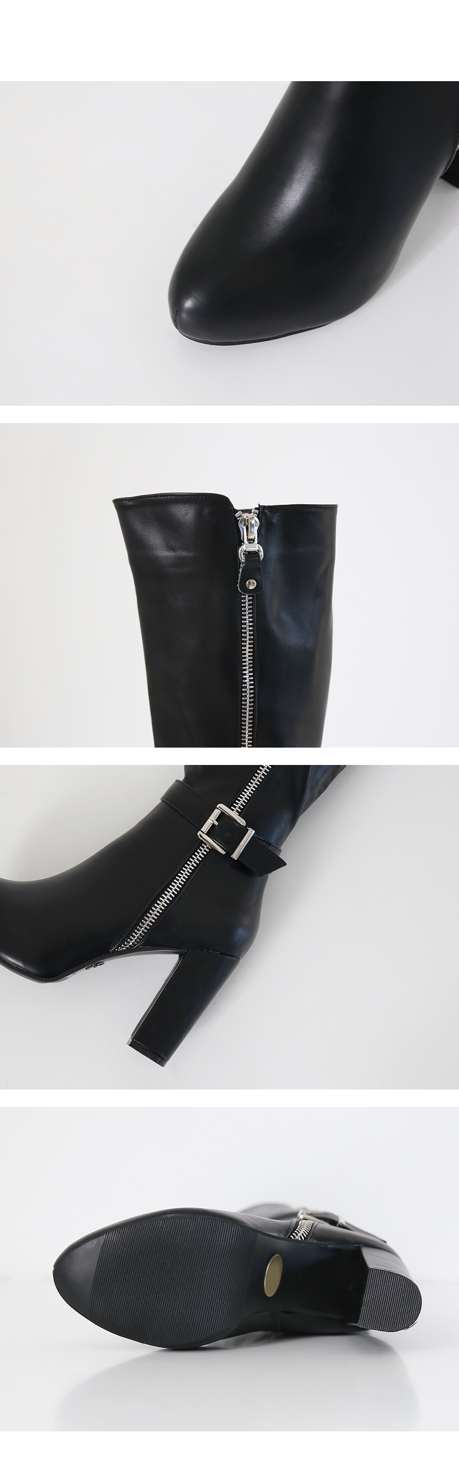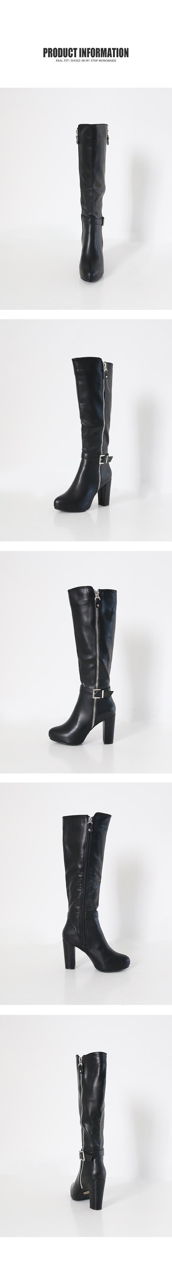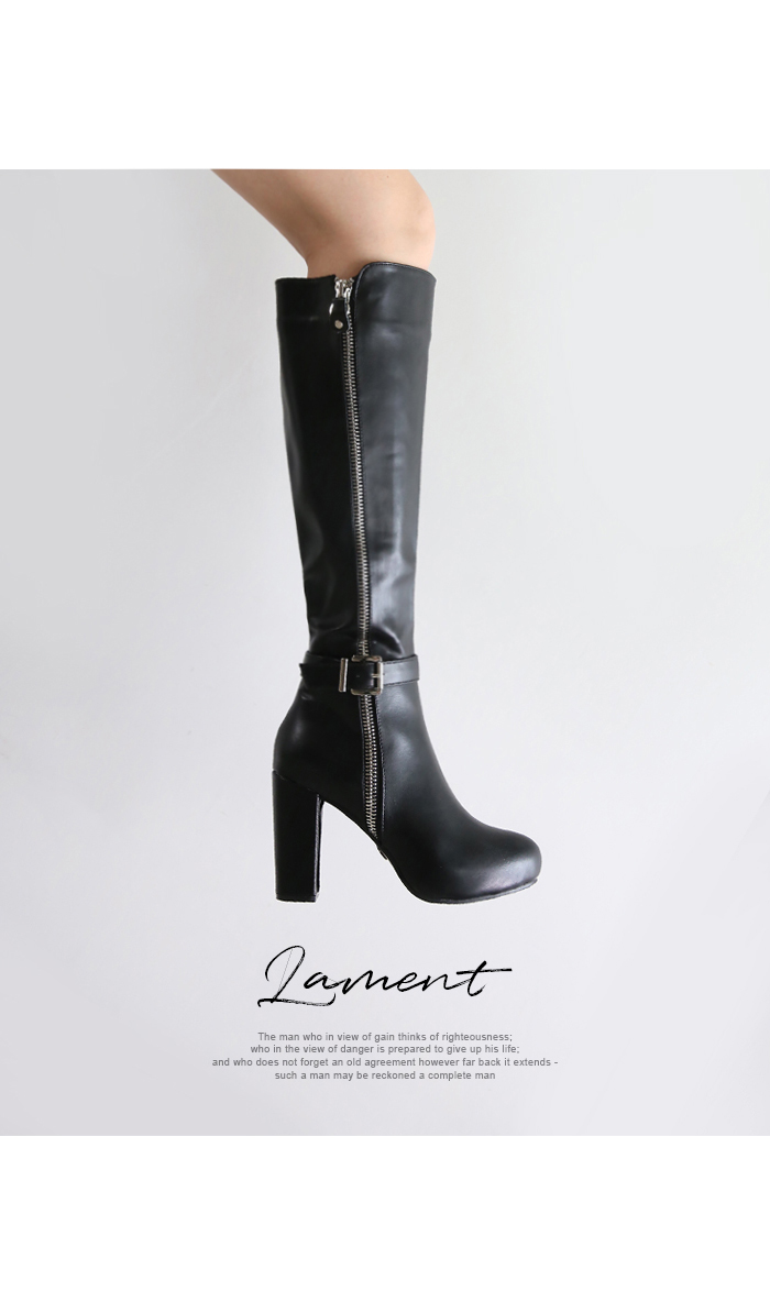 Chunky heel zipper point long boots.