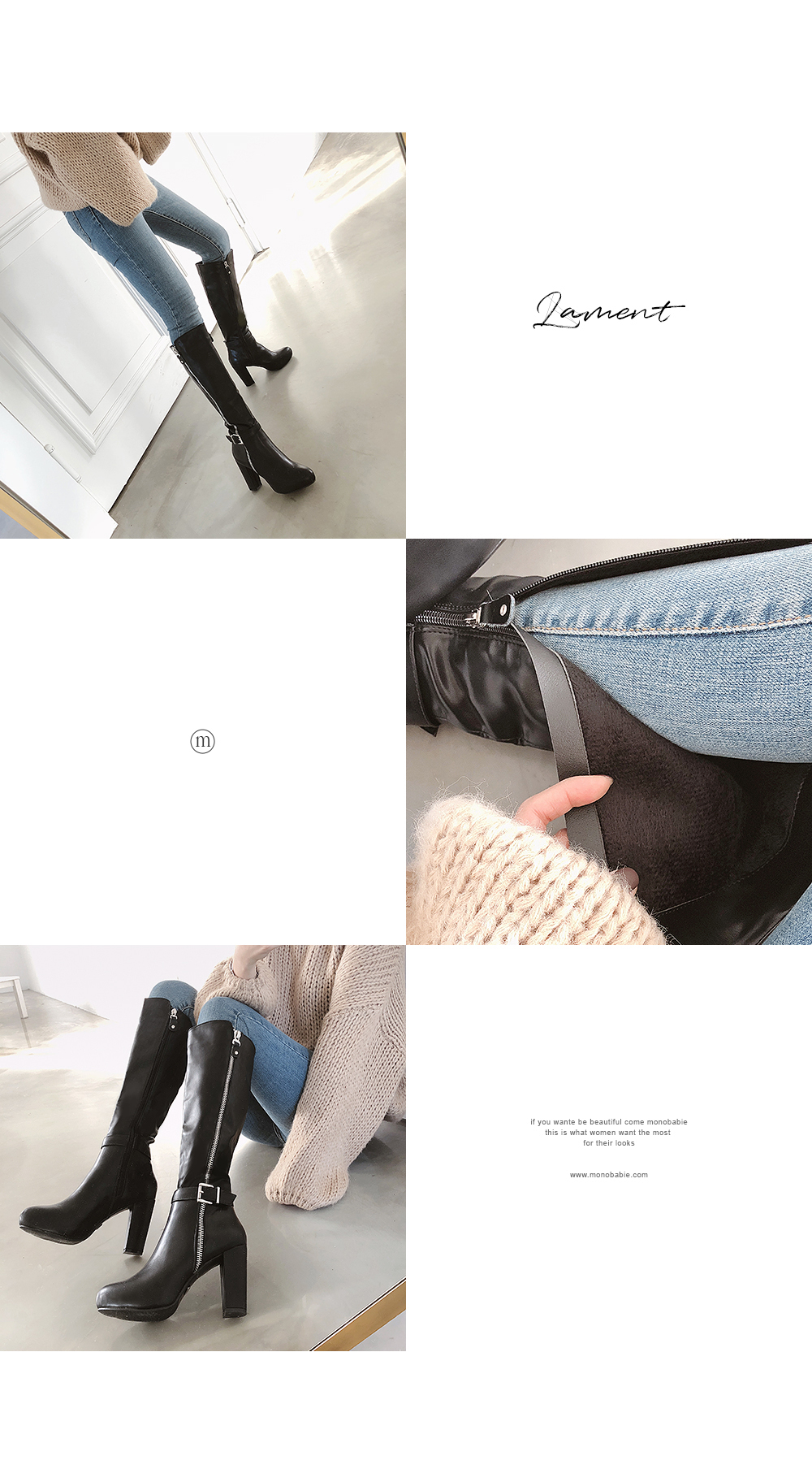 실측(cm) 굽9.5 단창0.2 발목둘레26 종아리둘레34 입구둘레37 발볼7.5 총장39