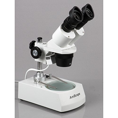 Stereo microscope for home or classroom use enables students and hobbyists to inspect biological specimens, rocks, stamps, jewelry, and large specimens that require handing or manipulation