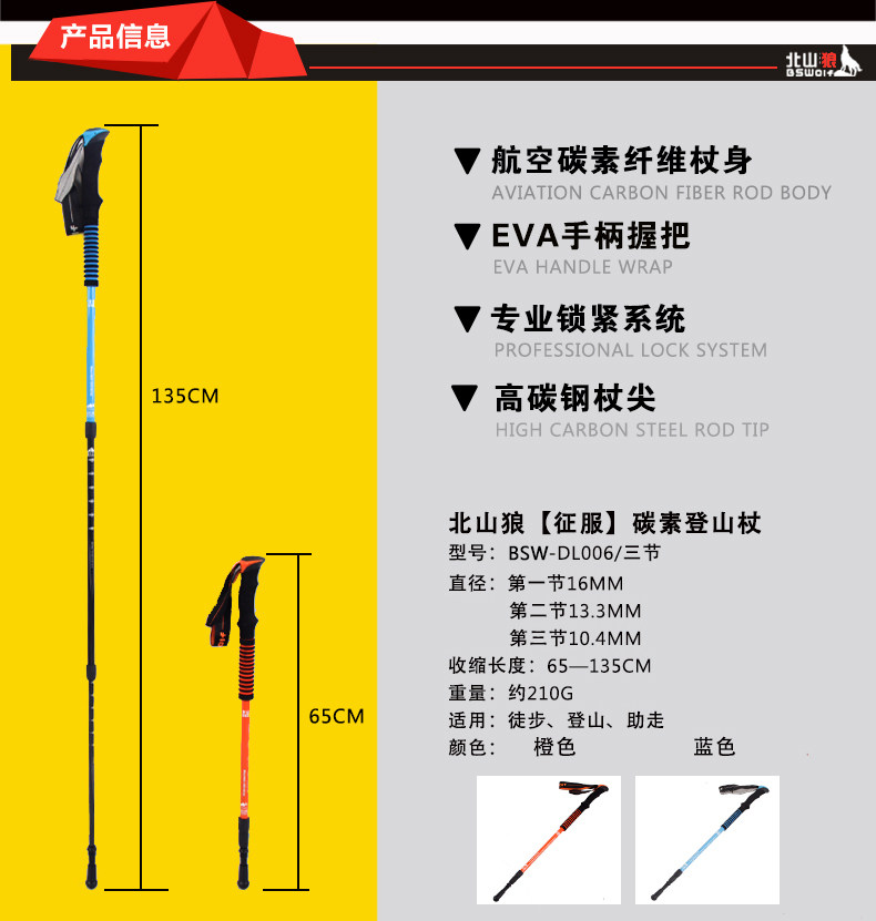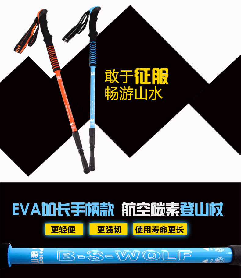 户外登山杖伸缩折叠手杖碳素徒步轻三节登山杖