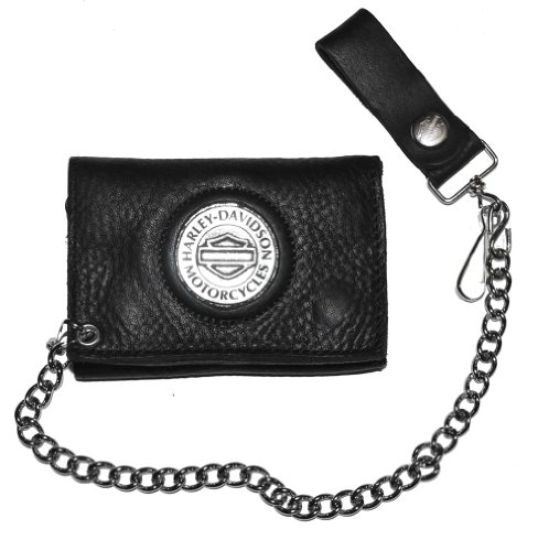 -. Title : Harley-Davidson Men's Medallion Tri-Fold Chain Wallet Black Leather TC316H