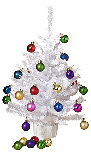 Holiday Essentials 18 Inch Decorated Tabletop Christmas Tree - Includes 20 Multi Color Ornaments! (White)