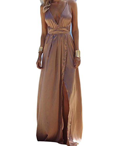 -. Title : Nicellyer 女性の深いvネックカジュアルな夏の色っぽい背中クロススプリットカクテルドレスマキシドレス
