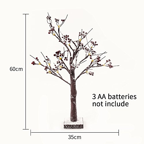 -. Feature : WARRANTY: lights have 1 year warranty with 100% satisfaction and zero hassle returns guaranteed. / Fashion Craneberries bonsai tree light,brown Branches with Snowflakes and red fruit ,24 clear warm white LED lights, meet the need of brightness, energy saving night light. / You can bend the branches and the tree into any shape or more natural tree shape as you like. Build up exclusive tree light style for yourself. / 3 AA batteries(Not included),Built-in 24-hour timer operates ,the tree light will automatically turn off after you press the on for six hours.The tree light will automatically open after the18 hours. / More attractive than the real plant bonsai.This led Bonsai Tree Light Perfect for home, bedroom, living room, balcony,window, office room, children's room,Christmas, New Year,restaurant, porch, pavilion, shelf, for , parties, birthday parties, wedding ceremony decoration.