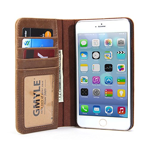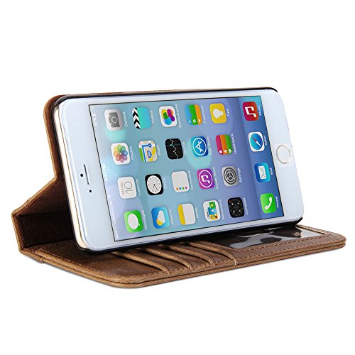 Pep up Your Device! GMYLE Book Case Vintage for iPhone 6s Plus is made with hard covers in distinguish-looking, high quality crazy horse pattern leather with a strong, thick spine. You can disguise your iPhone 6s Plus as a book, bringing a stylish vintage look and also converting your iPhone 6s Plus for hands-free viewing. The soft, velvet interior not only keeps damage at bay, but accentuates the sleek design of your iPhone 6s Plus. Featuring card slots and a money pocket, this convenient design is perfect for those on the go.
