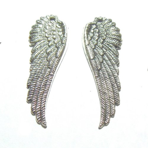 Large Wing Charm Pendant 2-inch Steampunk Right & Left Sides 12 piece lot (Silver)