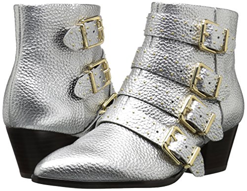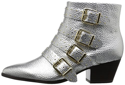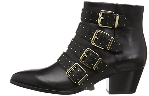 Product DescriptionFour buckle straps with metallic mini studs and hardware highlight this ankle bootie featuring a pointed toe.0