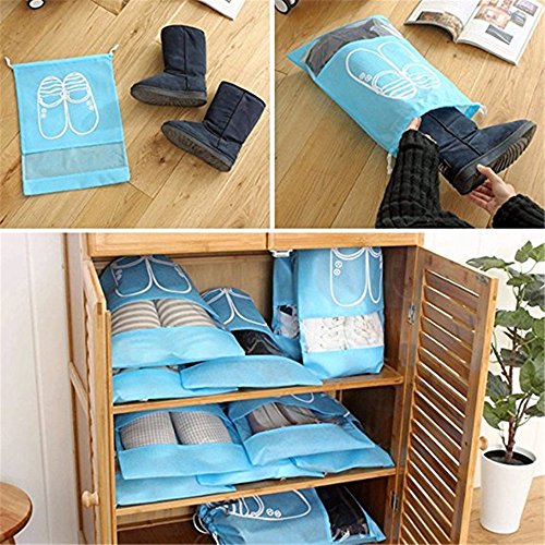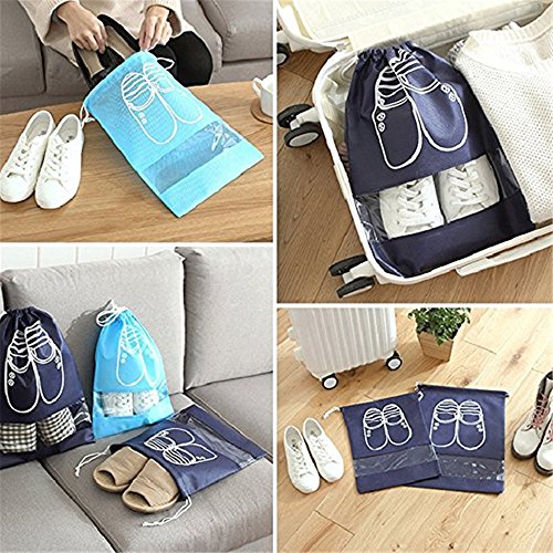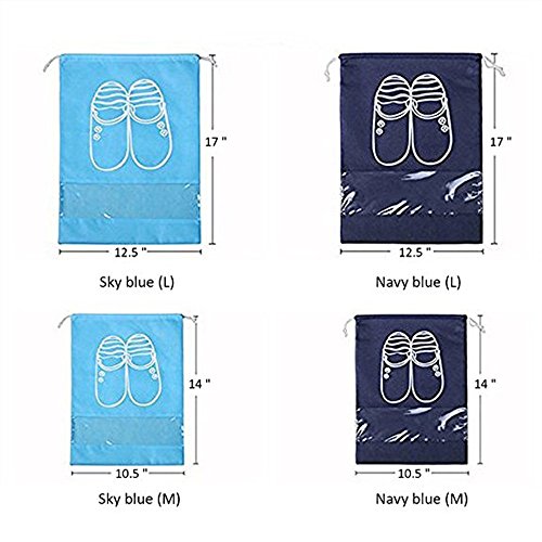 Product DescriptionSpecifications: Material:High-quality non-woven fabric material Color:Beige/Dark blue/Light blue Size:M:35.5*27cm/14*10.6inch,L:44*32cm/17.3*12.6inch; Package Included: 6 x Shoe Organizer Bags0