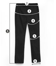 | 尺码 | ①裤长 | ②腰围 | ③臀围 | ④大腿围 | ⑤膝围 | ⑥脚围 | ⑦前裆 | ⑧后裆 | ||