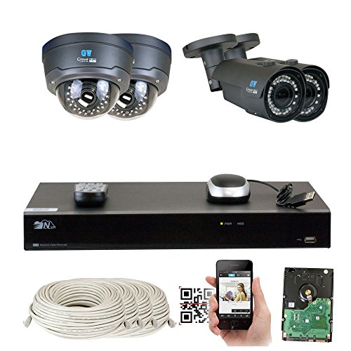 *****New Technology***** The latest H.265 video compression! 8 Channel H.265 Max 4K/8MP NVR with (4) H.265 4MP 1520P 2.8-12mm Manual Zoom Varifocal Lens Weatherproof PoE IP Cameras
