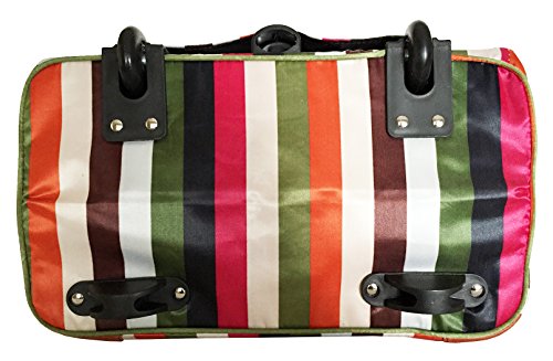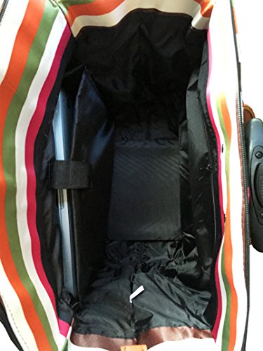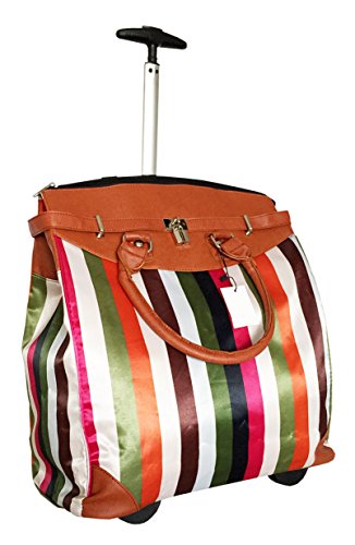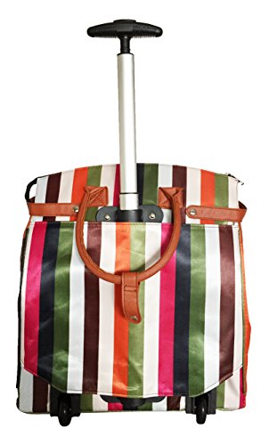 -. Binding : Electronics -. Brand : Trendy Flyer -. Color : Green, Brown, Red, Orange, Pink, Black, White -. Department : laptop-computer-briefcases -. EAN : 0746839981935 -. Feature : Color: Green, Brown, Red, Orange, Pink, Black, and White / Padded laptop area can fit laptop 12.5" wide, 10" tall and 3" thick using securing velcro strap/Padded laptop area can fit laptop 12.5" wide, 14" tall and 3" thick without using securing velcro strap / Material: Polyester Canvas with Polyurethane Trim / Pattern: Stripes / Size: 17.5" H x 16.5" L x 9" W / Weight: 4.5 lbs / Additional Info: Height From Top of Handle to Floor with Handle Fully Extended: 36" -. PackageQuantity : 1 -. ProductGroup : PC Accessory -. ProductTypeName : CARRYING_CASE_OR_BAG -. Title : Trendy Flyer Computer/Laptop Rolling Bag 2 Wheel Case M Thick Stripes -. UPC : 746839981935