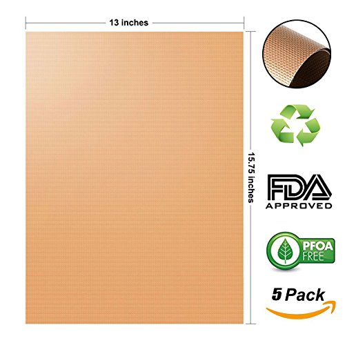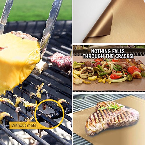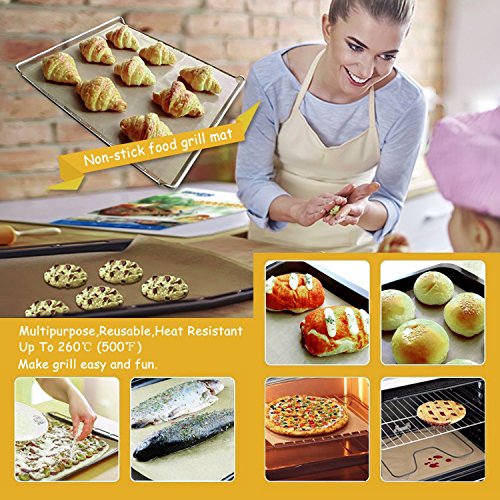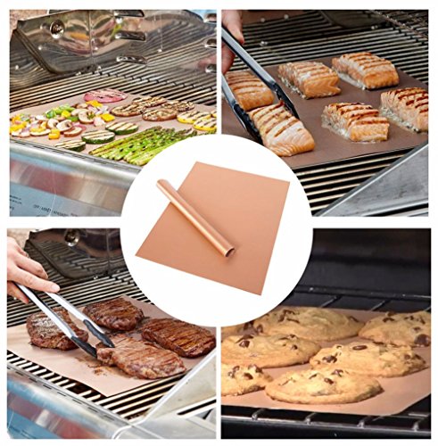 XCOOK Copper BBQ Grill Mat 5 Pack Non-stick Reusable Heat Resistant Easy to Clean Barbecue Cooking Baking Mats