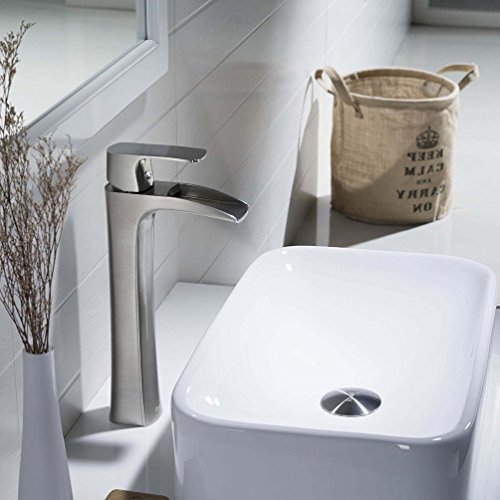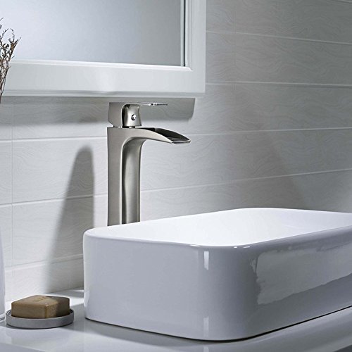 -. Title : GreensP.R.Ing Brushed Nickel Brass Waterfall Bathroom Vanity Sink Faucet Single Handle One Hole Vessel Lavatory Basin Mixer Tap Tall Body