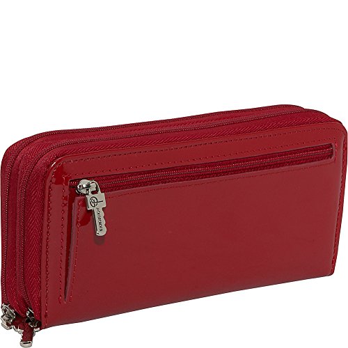 -. Binding : Apparel -. Brand : Jack Georges -. Department : womens -. Feature : Italian patent leather / Lined with black nappa leather for added flexibility and a soft touch / Slots for 22 credit cards / Id window / Eight pockets for holding receipts, notes, etc. -. Label : Jack Georges -. Manufacturer : Jack Georges -. PackageQuantity : 1 -. ProductGroup : Apparel -. ProductTypeName : ACCESSORY -. Publisher : Jack Georges -. Studio : Jack Georges -. Title : Jack Georges Patent Collection Double Zip Clutch