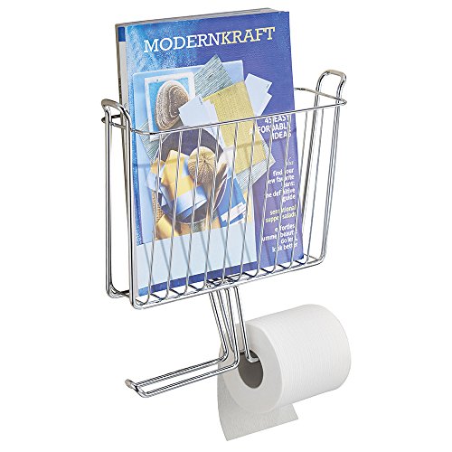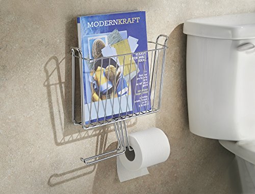 mDesign Wall Mount Newspaper and Magazine Rack with Toilet Paper Dispenser - Chrome