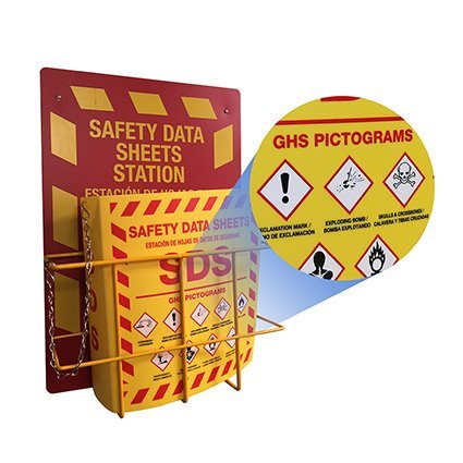 Bilingual Right to Know SDS Center Wire Rack and 3" Binder with GHS Pictograms