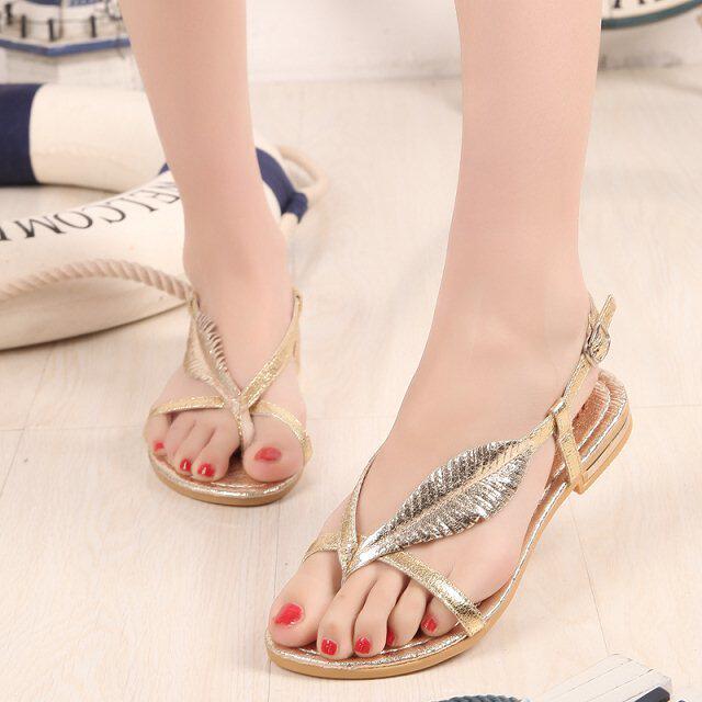 夏季新款平底女波西米亚夹趾平跟女甜美沙滩女式学生凉鞋韩