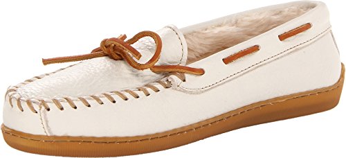 Minnetonka moccasins feature a suede leather upper with a pile lined sole for the perfect comfort and style. Flexible rubber outsole for smooth grip and traction. Round toe with stitching details. Imported. As an authorized retailer of Minnetonka Moccasin products, we cannot accept orders from outside the United States for Minnetonka products. We are very sorry for any inconvenience this may cause you.Feature