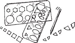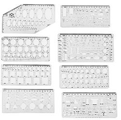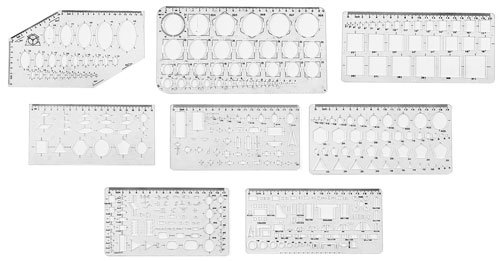 - 1 circle, hexagon, pentagon, and triangle template, 1 perspective shapes template, and 3 assorted shapes template