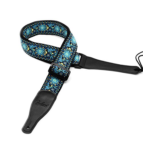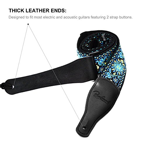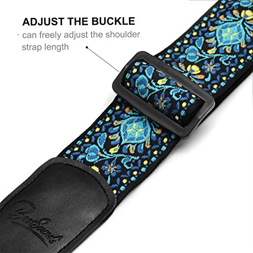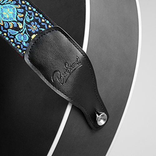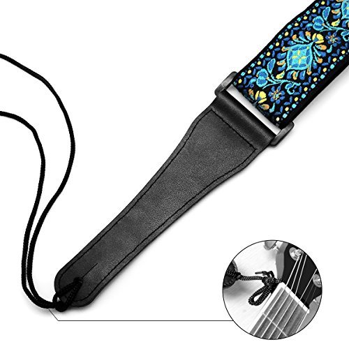 Made of High-grade material jacquard weave embroidery braid + cotton material and Genuine leather ends(Firmly tied your Guitar).The length can be adjusted easily, you can adjust different length according to your need.