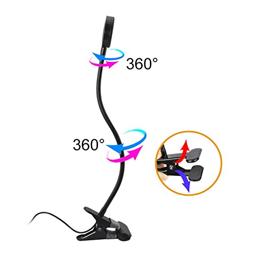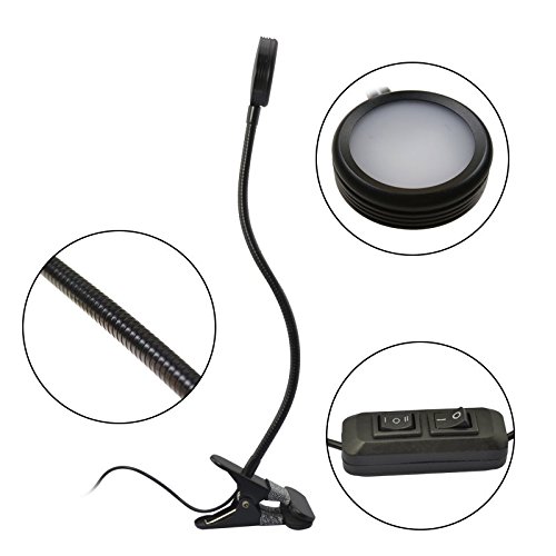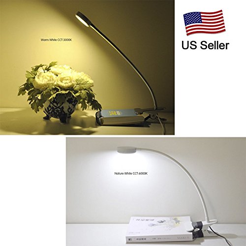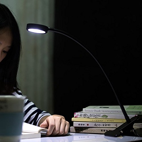 RCLITE Eye Protection Portable Clamp on LED Desk Lamp LED Reading Lamp with 2-Levels Brightness Switch Dimmer, 6W, Warm White and White Light Convertible (Black)