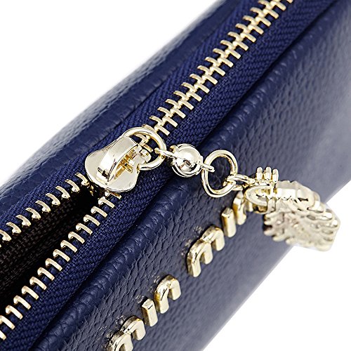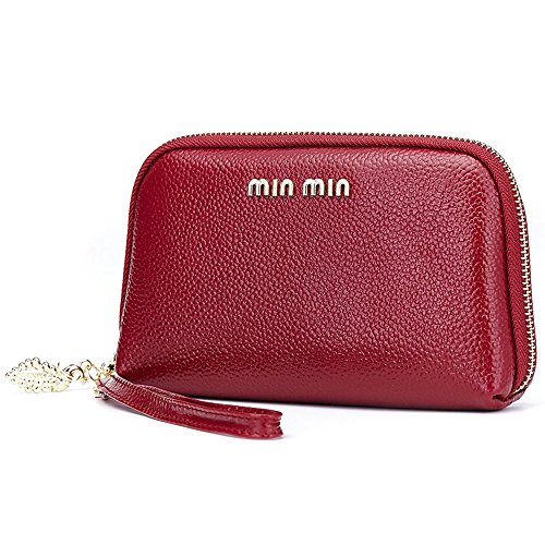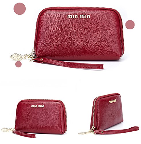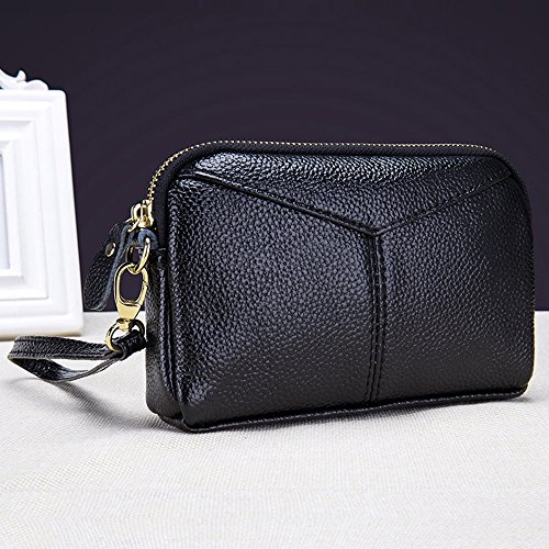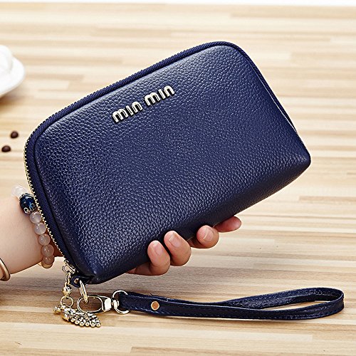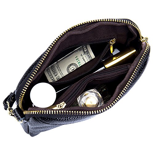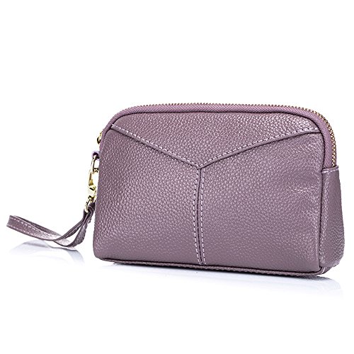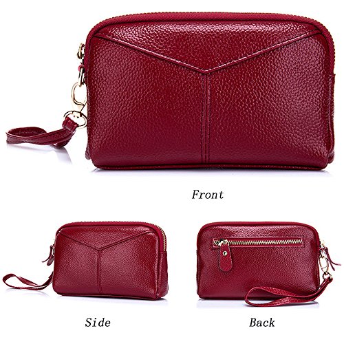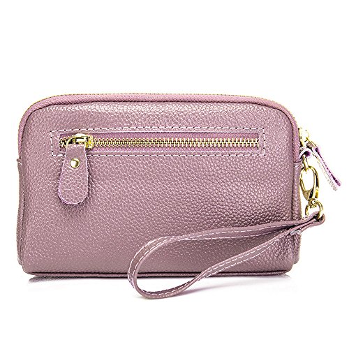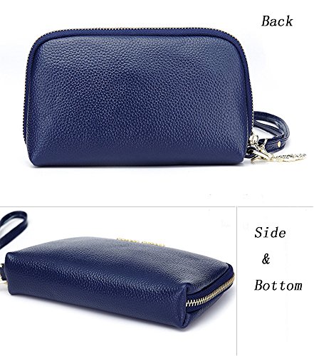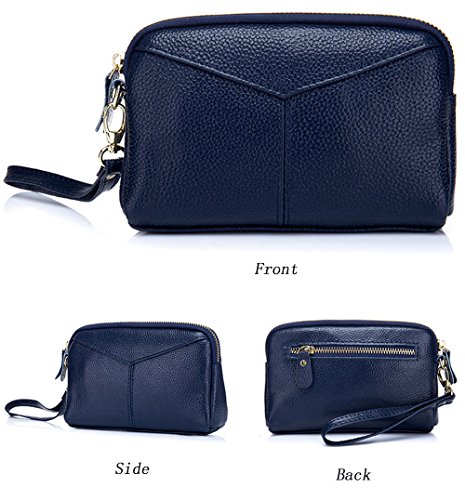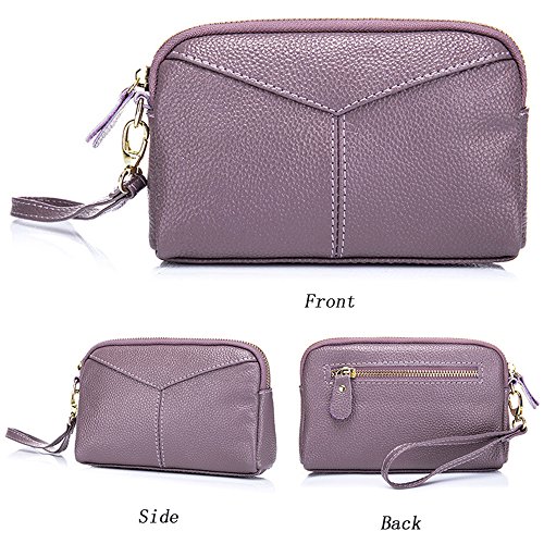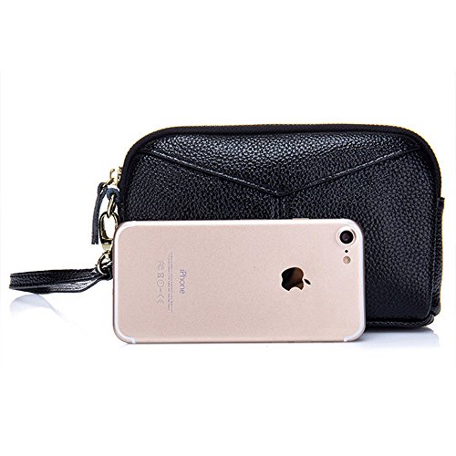 Aladin March Release: Womens Zip Leather Wristlet Purse Cell Phone Wallet Handbag Size: Measures (L)7.5 x (W)4.7x (H)1.8 inches Lightweight: Only 5.6 ounces, barely feel its weight, good for your wrist. Structures: 1 large main zipper pocket, with 1 secret zipper pocket and 1 card holder compartment inside, 1 back zipper pocket; 1 removable wrist strap included. Large Capacity: Cell phone, small wallet, lipstick, glasses, tissues, keys, power bank or other things you carry. Quality Split Leather: Soft genuine cowhide leather, lightweight, warm and comfortable hand feeling, more durable than faux leather. Heavy-duty Metal Zipper: Metal zipper with leather zipper tab, sturdy, smooth and stylish Intend For: Ladies who looking for a small but large capacity wristlet purse, or women who don't want to carry a big bulky handbag all day. About Aladin: We devote to provide special design personal items, especially in leather product such as womens wallets, mens wallets, card cases, and various bags. All Aladin products have at least 3 months guarantee, some are longer. Thank you for choosing Aladin.