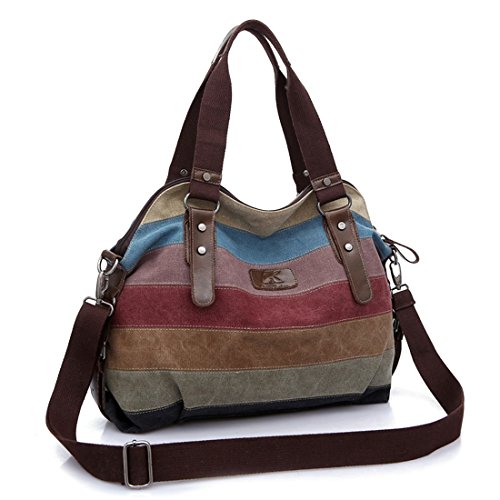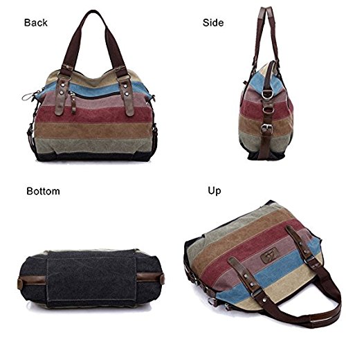 - 【UNIQUE DESIGN:】 Printed with vibrant color stripes, our canvas handbag looks fashionable. Perfect tote bag for school, business, travel, shopping and so on