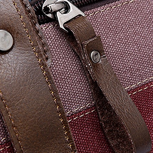 - 【CLOSURE:】Zipper on top. Multi-pockets: it has two main compartment and a sandwich zipper pouch. And with one phone pocket, one document pocket, one back zipper pocket inside